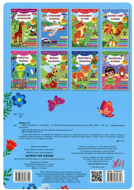 Великі наліпки для малят. Барвистий півник. Ірина Цибань