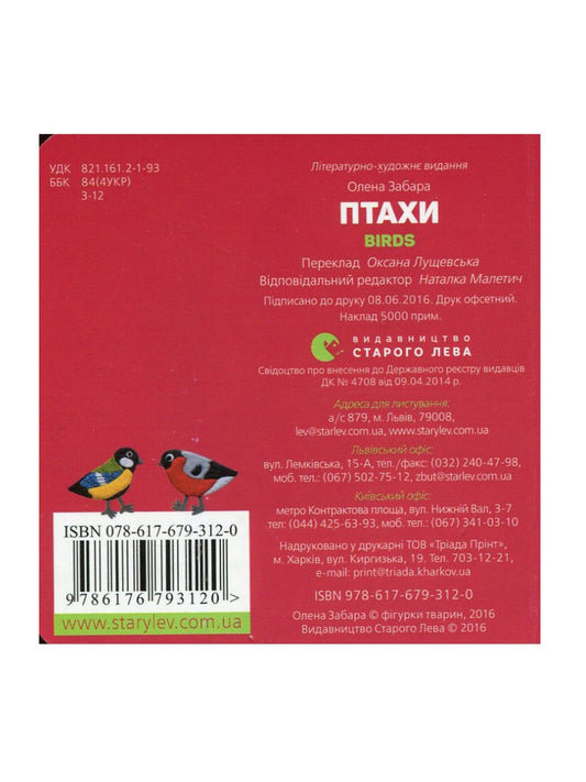 Птахи / Birds. Олена Забара. Двомовна книга для найменших