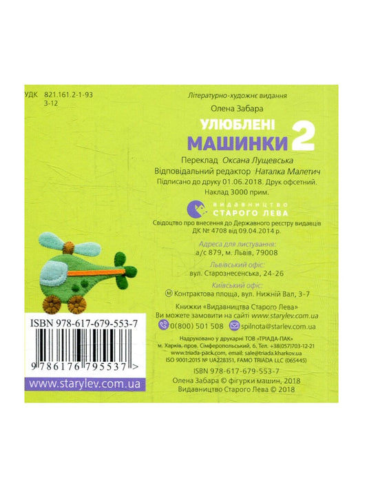 Улюблені машинки 2. Олена Забара. Двомовна книга для найменших