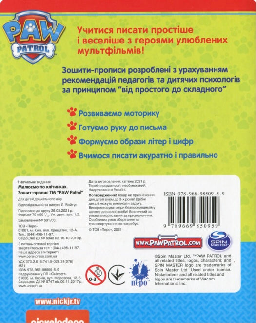 Малюємо по клітинках. Зошит-пропис. PAW Patrol