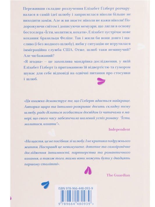 Я (не) згодна. Як одна жінка, яка не вірила у шлюб, таки вийшла заміж. Елізабет Ґілберт