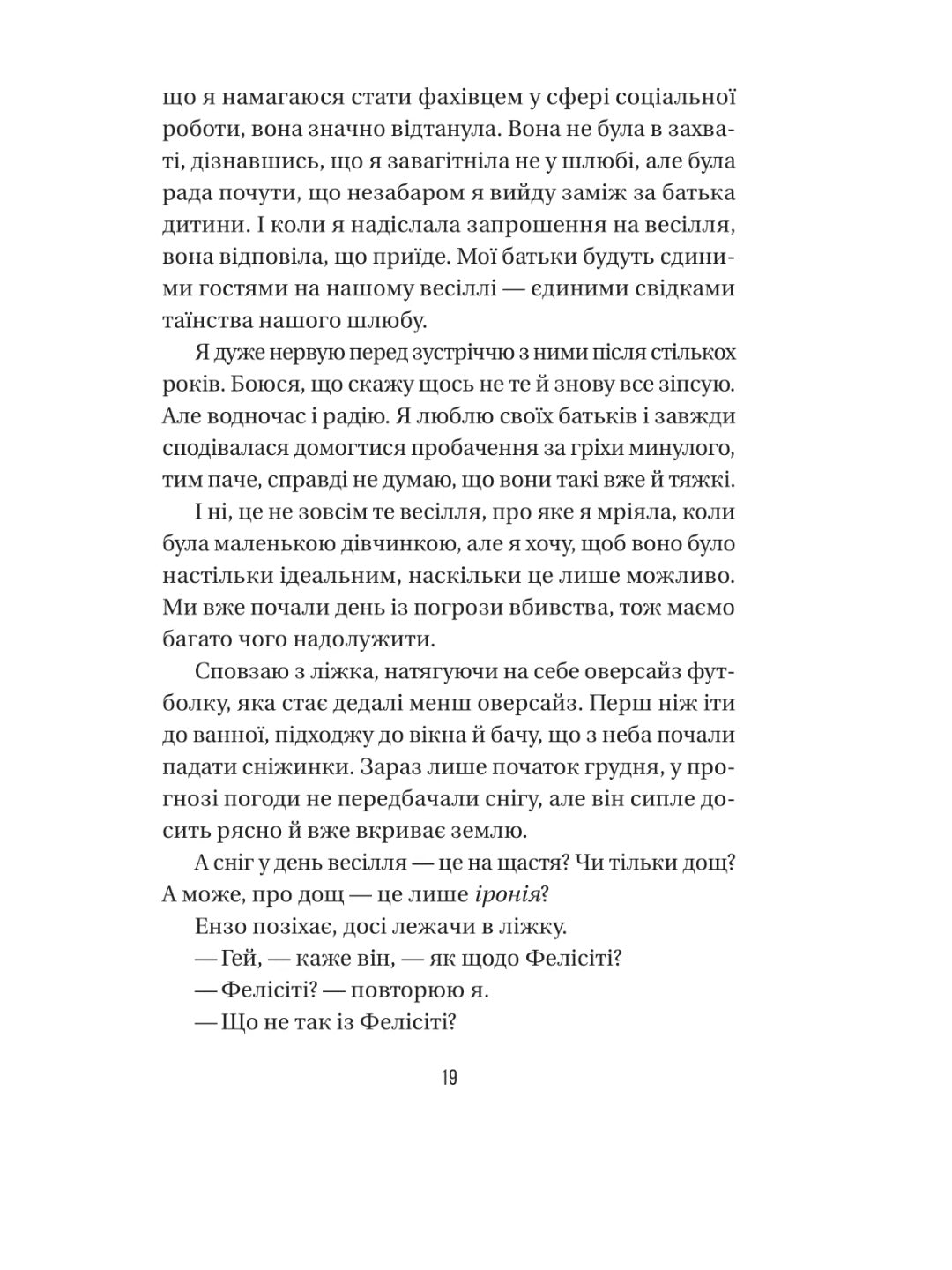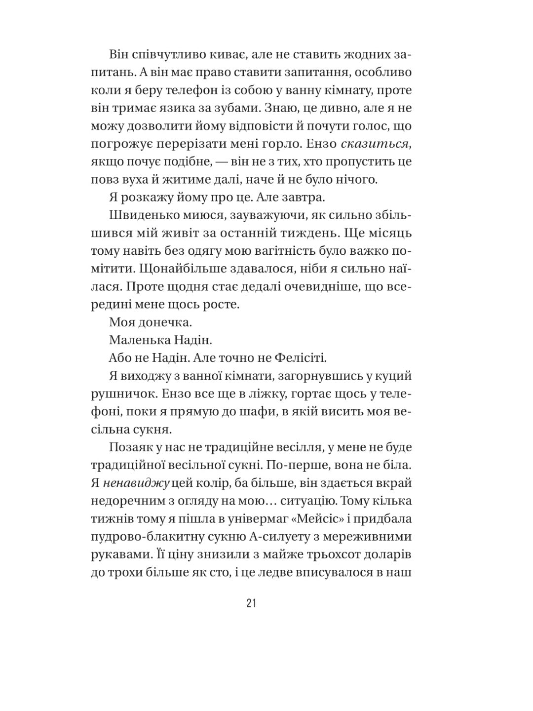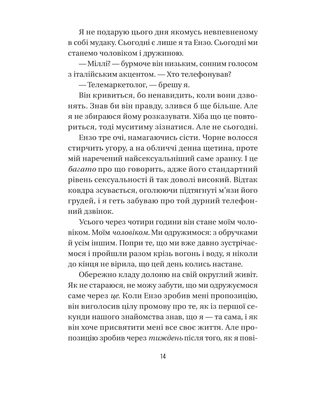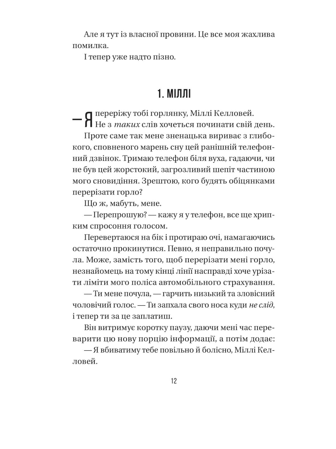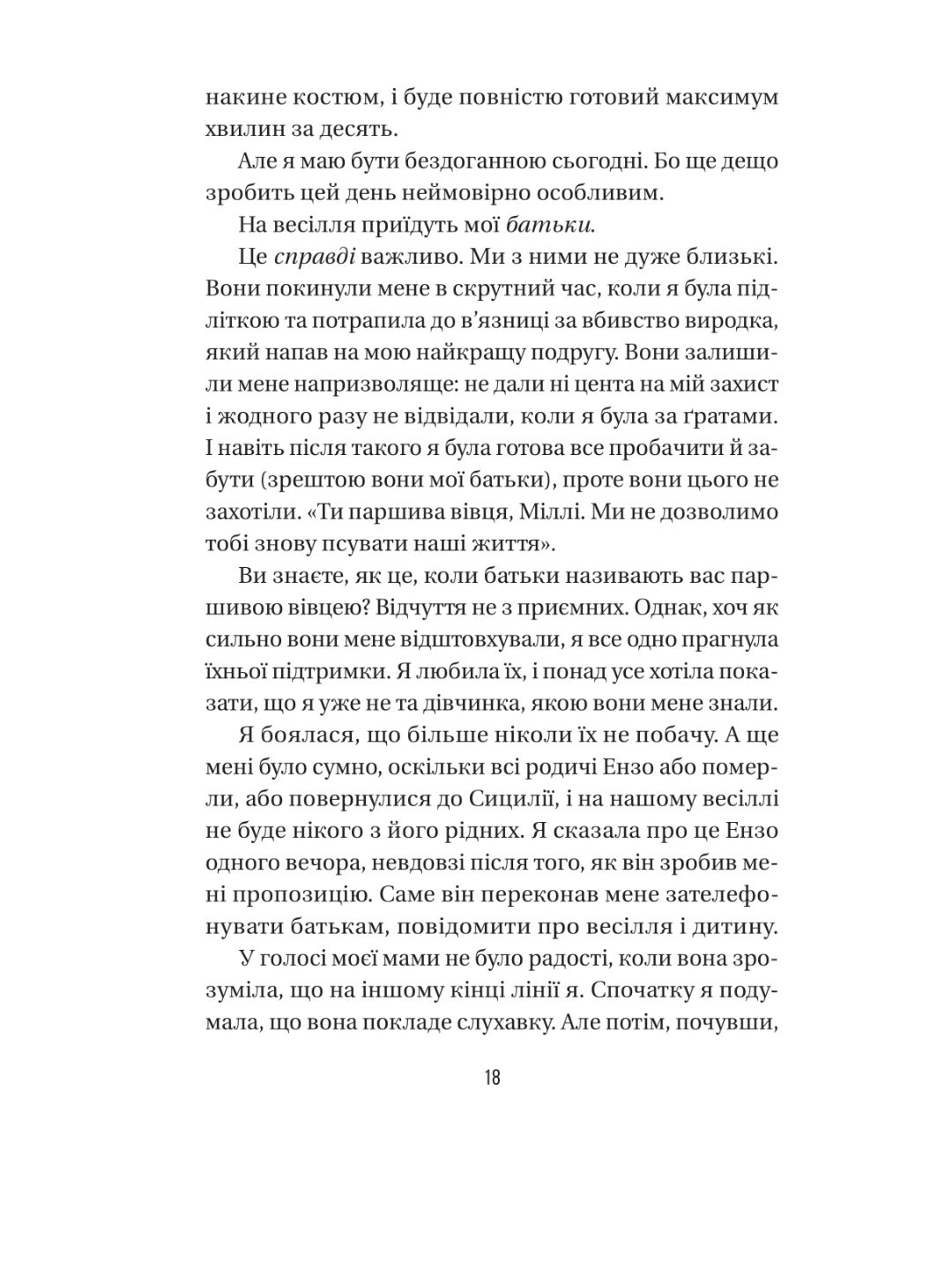 Книга містить три короткі твори, перший який є оповіданням, що доповнює серію «Служниця» й присвячений дню весілля Міллі й Ензо. Вранці жінку будить дзвінок від незнайомця, який клянеться вбити її, проте вона не зважає на це, адже вже не раз отримувала такі погрози — під час своєї діяльності Міллі часто занурювалася у чужі справи, викриваючи негідників. Певно, знову один з них прагне помсти. Вона приховує від нареченого суть дзвінка, адже не хоче псувати свій щасливий день. Борючись зі страхом, жінка намагається переконати себе, що може впоратися з цим самостійно, а її весілля все одно буде ідеальним, адже попередні погрози ніколи не справджувалися. Проте дзвінки продовжують надходити, і Міллі розуміє, що переслідувач стежить за нею зблизька і готовий напасти.