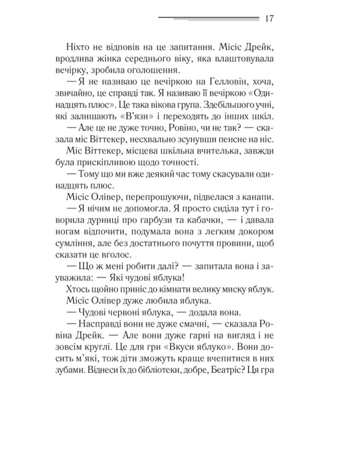 "Я бачила вбивство!" — заявила тринадцятирічна Джойс під час вечірки на Гелловін. Звичайно ж, ніхто з гостей їй не повірив, навіть Аріадна Олівер, знана авторка детективів. Ох уже ці підлітки, які постійно прагнуть у будь-який спосіб привернути до себе увагу!