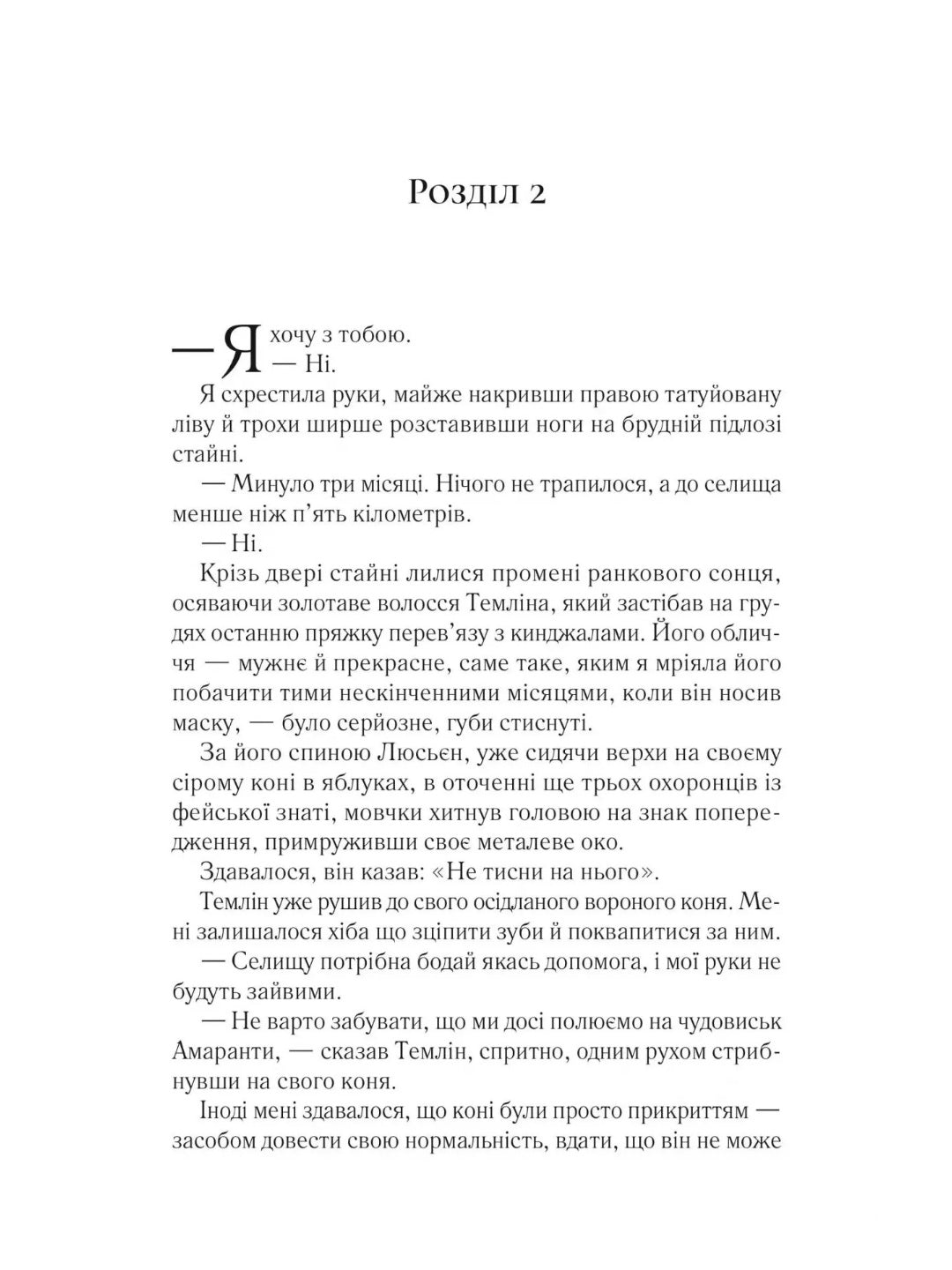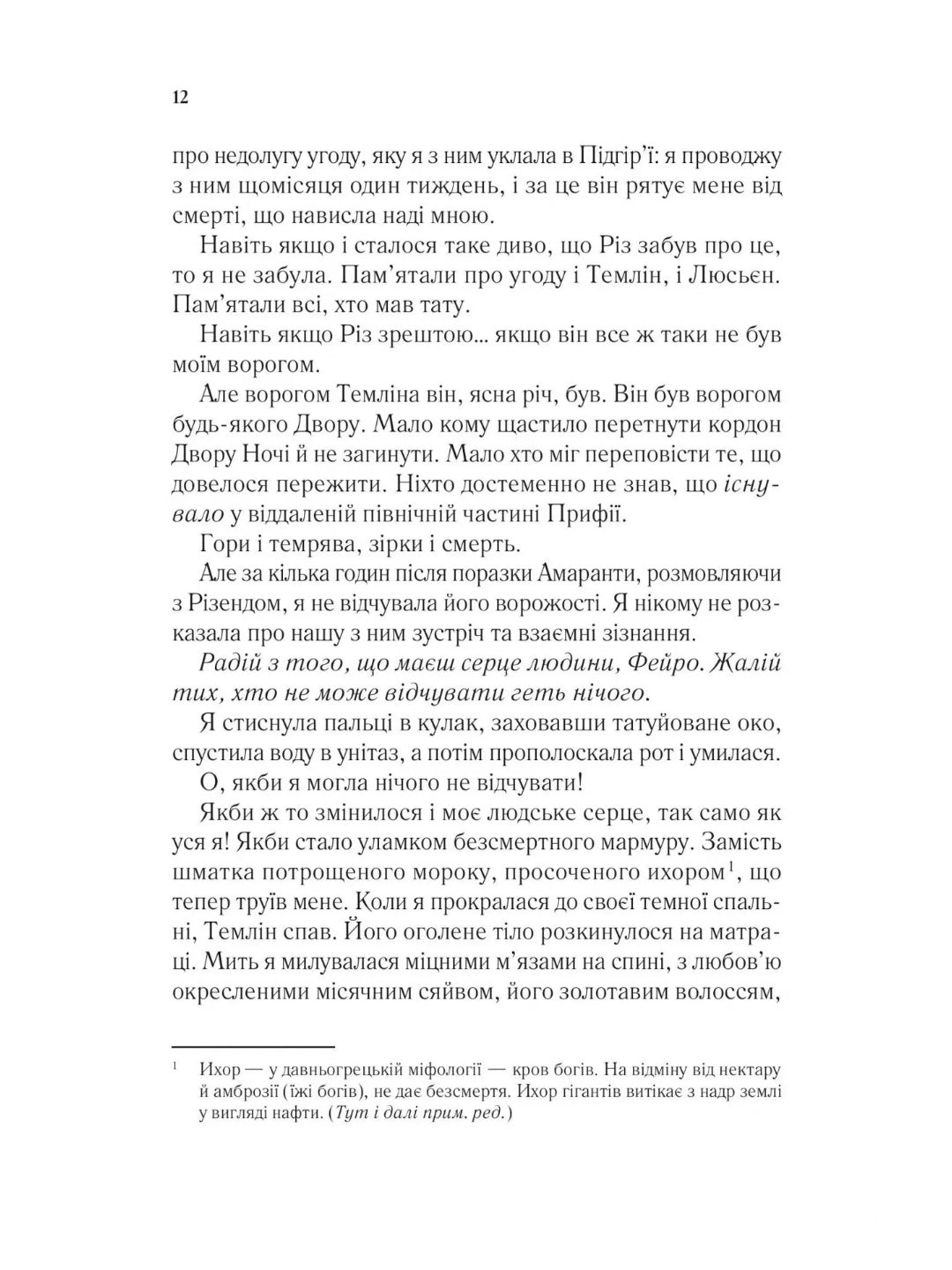 Різенд поводиться зухвало, проте несподівано лише у його домі Фейра почувається вільною, адже він прагне допомогти їй. Крім звикання до нового тіла і того, на що воно здатне, дівчині доводиться стикатися з черговими таємницями й викликами. З огляду на війну, що нависла над Прифією, Фейра вже не знає, кому можна довіряти. На кону опиняється родина й особисте щастя дівчини, а також доля світу людей і фейрі.