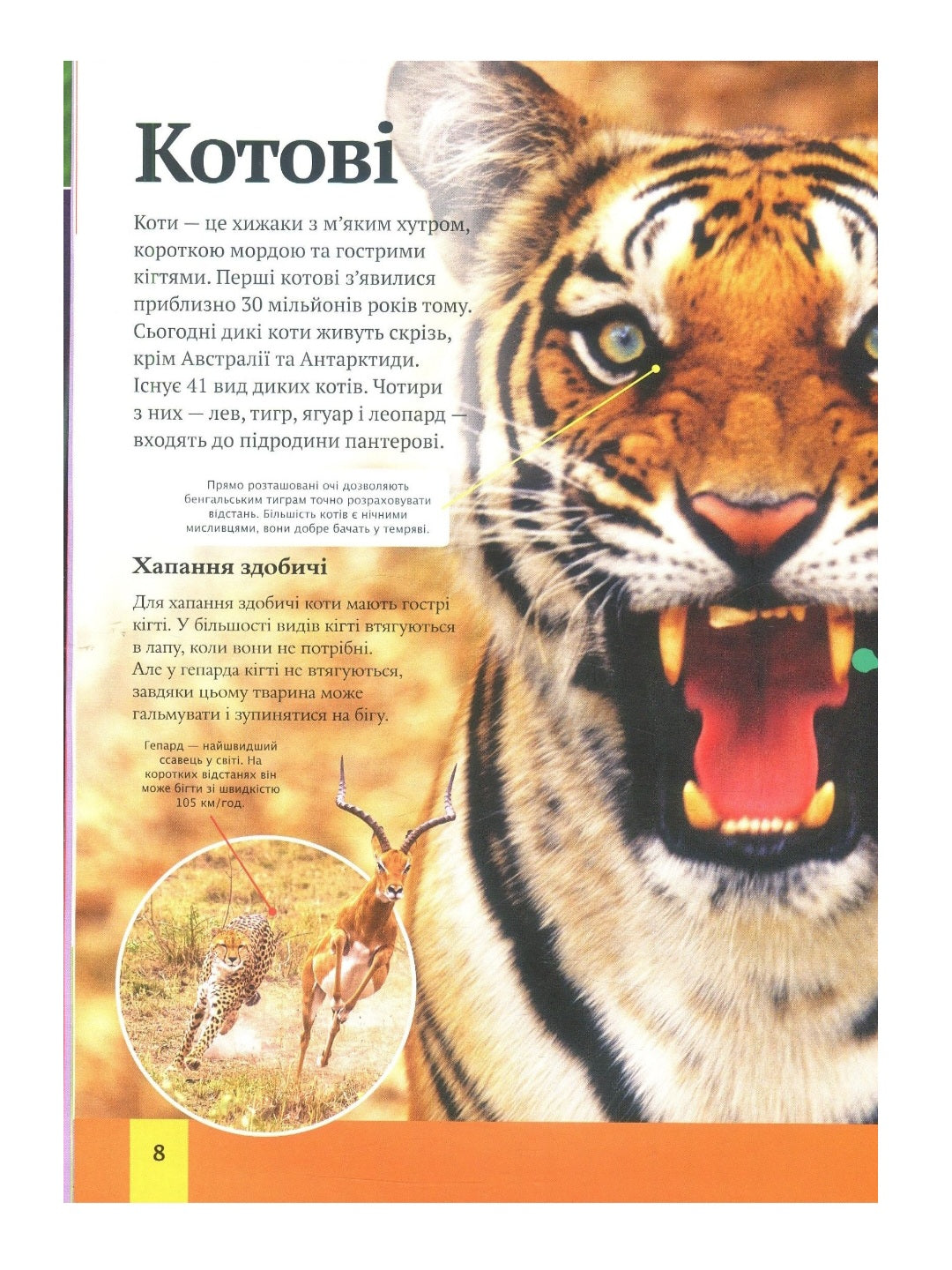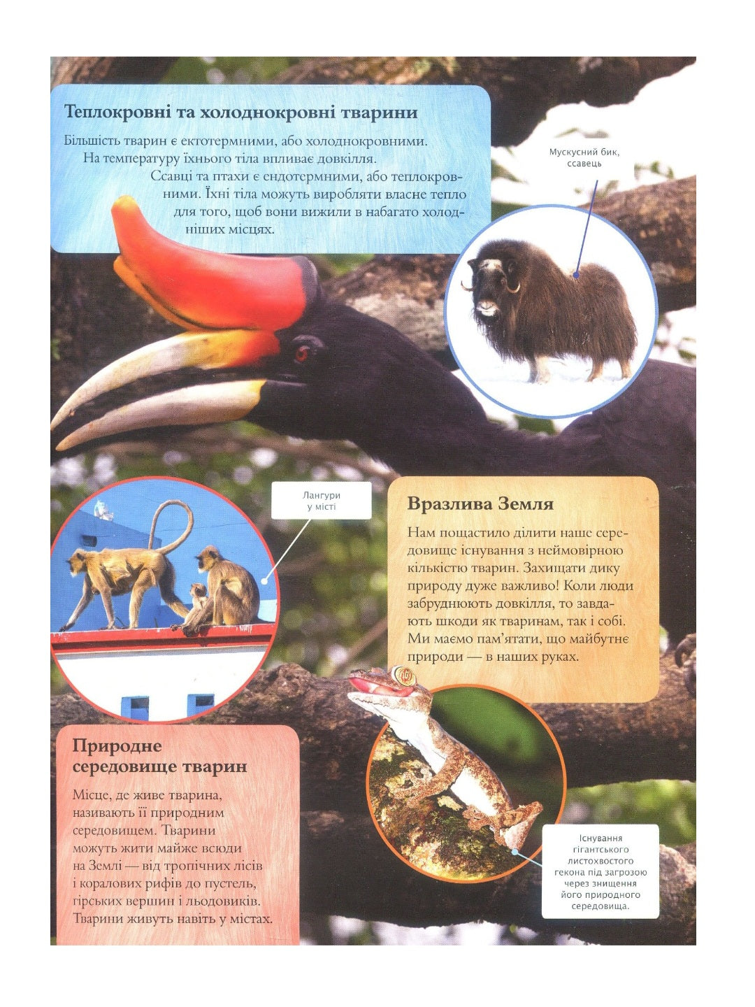 «Дитяча энциклопедія тварин» — унікальний шанс познайомитися з найзагадковішими мешканцями нашої планети. Юні читачі дізнаються багато нового про ссавців, земноводних, рептилій, птахів, риб і комах.Достовірні факти, яскраві реалістичні ілюстрації та захопливі подробиці зроблять занурення у світ тварин незабутнім.