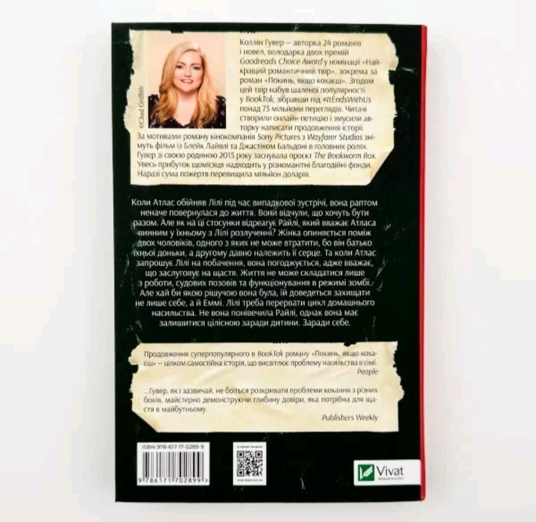 Продовження роману-бестселера «Покинь, якщо кохаєш» розповідає про подальше життя Лілі Блум після того, як вона покинула свого аб’юзивного партнера Райлі. Цього разу історія зосереджується на стосунках дівчини з Атласом, її першим коханням. Проте минуле не хоче відступати так легко. А спільна дитина з колишнім чоловіком ще більше все ускладнює, адже той прагне повернути їх обох. До того ж Атласа також наздоганяють його сімейні таємниці, про які він нічого не знав.