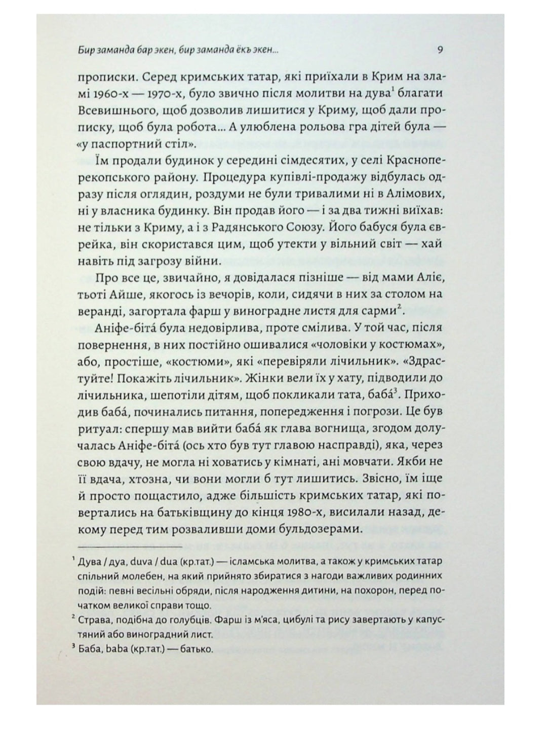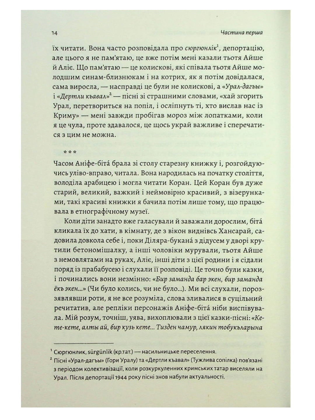 Авторка не тільки розповідає про власний шлях, а й торкається важливих політичних і загальнолюдських тем, досліджуючи історію Криму не тільки як території, а живого простору зі своєю культурою, людьми та їхніми долями. Письменниця вказує на вплив минулого, родини, мови, освіти й оточення на формування особистості. Авторка закликає взаємно досліджувати культуру, традиції, релігії півострова та материкової частини України, щоб мати більше контексту й розуміння одне одного, адже саме це призведе до об’єднання й усвідомлення ідентичності. Тому ця книга зацікавить тих, хто шукає відповіді на складні питання приналежності, пам’яті, мови, коренів, а також хоче більше знати про життя й близьке минуле Криму.