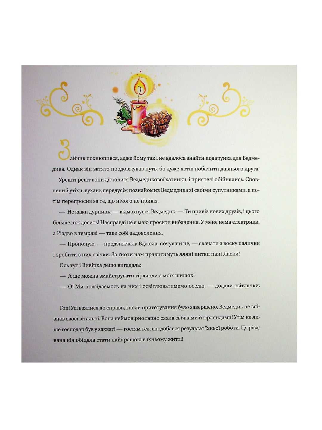 Живе собі в чарівному лісі малий Зайчик. І ось напередодні Різдва в його житті трапляється радісна подія: найліпший друг запрошує на гостину, щоб відсвяткувати вкупі. Нумо супроводжувати вуханя в цій подорожі й допомагати в пошуках прегарного подарунка для приятеля!