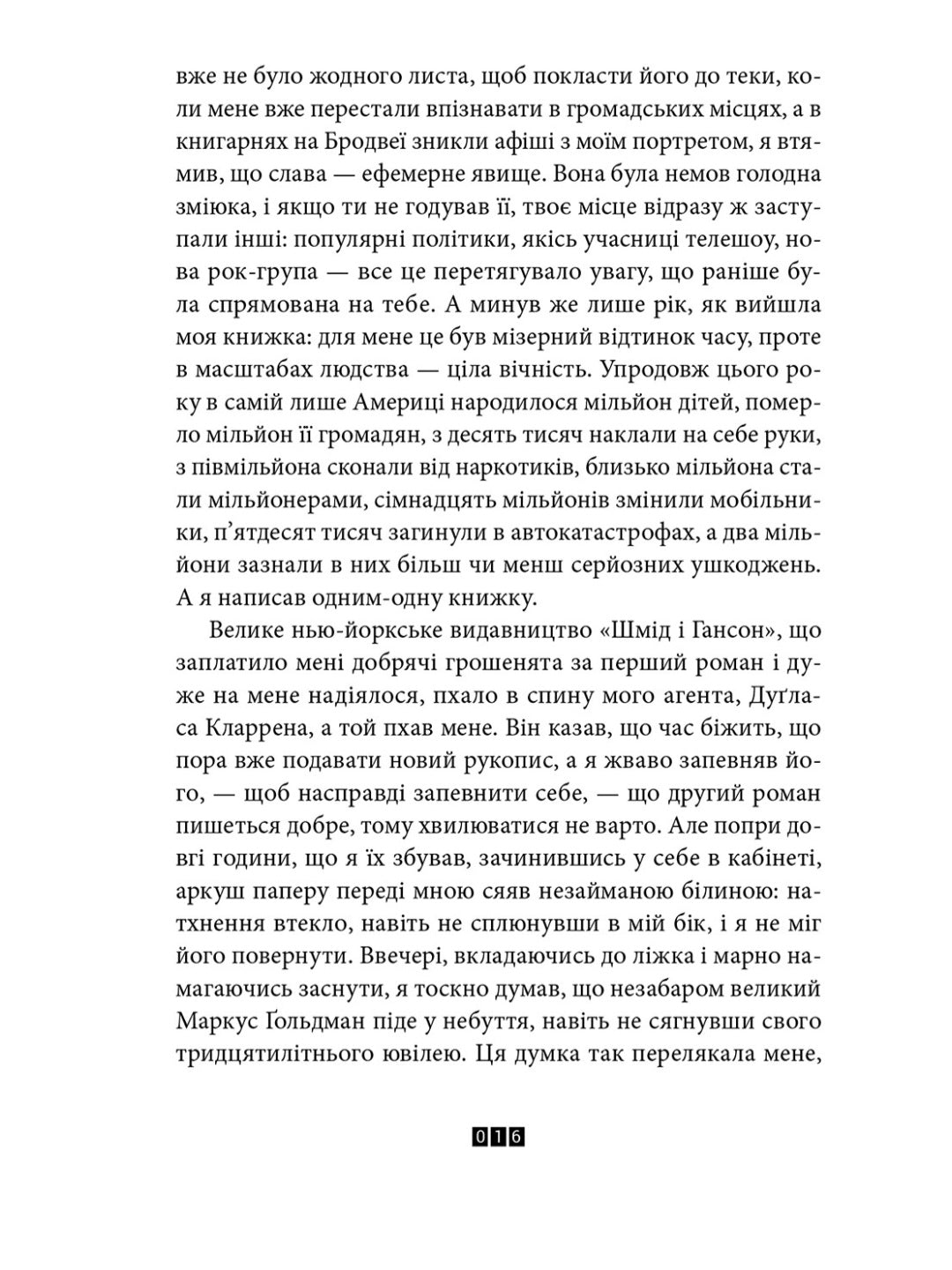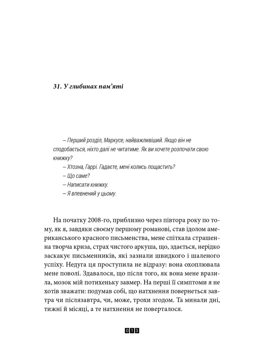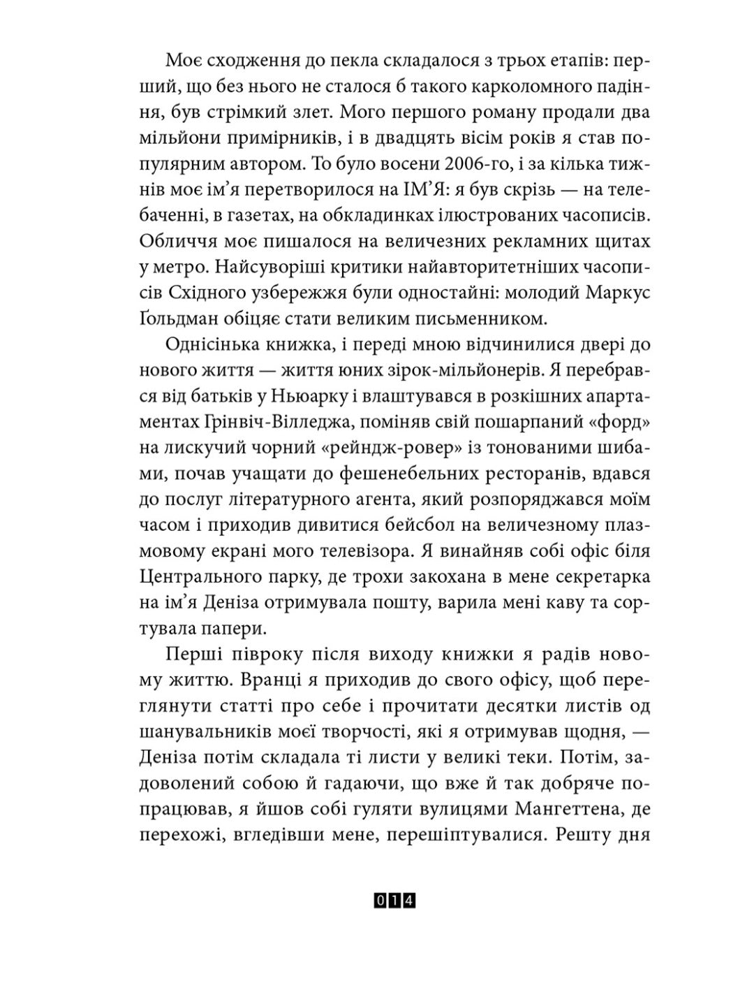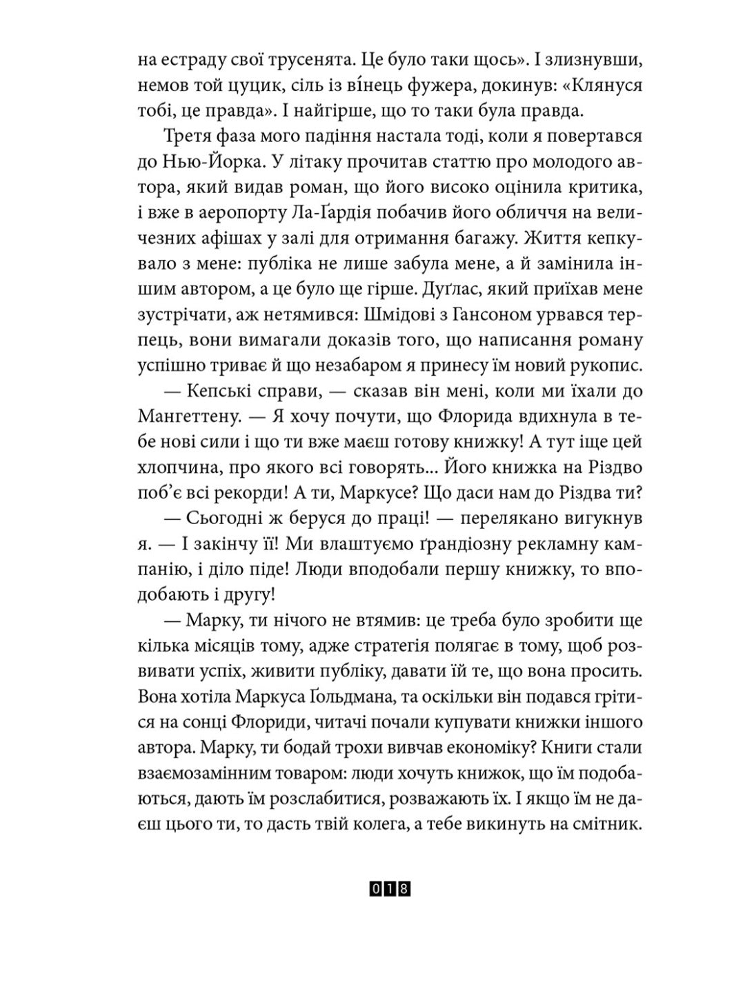 Молодий письменник Маркус Гольдман дебютував зі своїм першим романом так гучно, що здається – світова слава біля його ніг. Щоправда, друга книжка ніяк не напишеться, а вдячні читачі от-от оберуть нового кумира. Маркус звертається по допомогу до свого наставника - одного з найвідоміших авторів сучасності Гаррі Квеберта. Та крім цінних порад, як подолати страх чистого аркуша та написати бестселер, отримує від нього ще й кримінальну справу. Квеберта звинувачують у вбивстві 33-річної давності. Щоб допомогти йому та написати про це нову книжку, Маркус береться розслідувати справу. І виявляється, що правда про Гаррі Квеберта буває не одна. І кожного разу, коли здається, що всі пазли складено, винних знайдено, а мотив очевидний, варто лише перегорнути сторінку - і з’являється новий факт, який переверне все дороги дриґом.