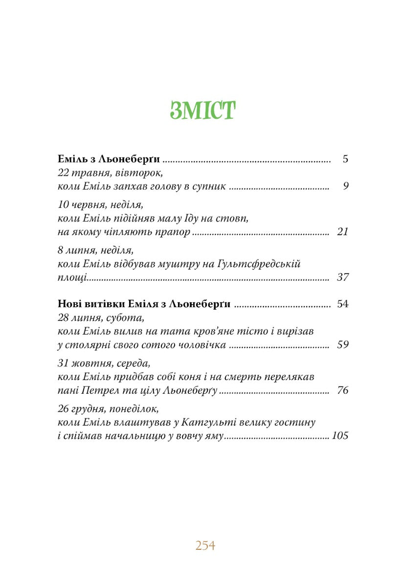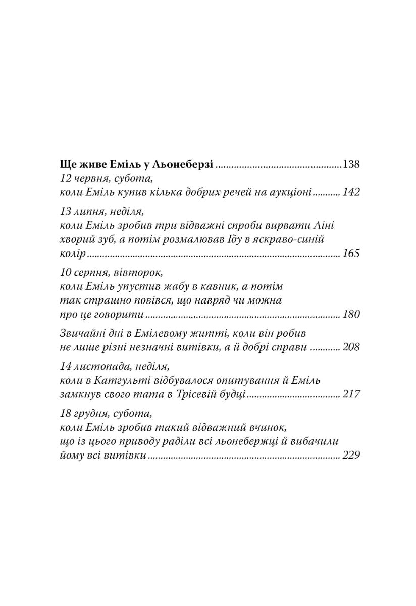 Більш ніж пів століття трилогія про Еміля — найулюбленіша з книжок Астрід Ліндґрен у Швеції. Знають і люблять пустуна з Льонеберґи в усьому світі. Юним читачам буде цікаво дізнатися про пригоди цього розумного, допитливого і винахідливого хлопчика, який постійно потрапляє в халепи. То він ставить мишоловку під стіл, в яку потім упіймався… батько, то змушує наймичку Ліну стрибати з даху, щоб вирвати зуба, то підіймає на флагшток сестричку Іду, щоб вона побачила околиці, то викопує яму-пастку для вовка, в якій опиняється начальниця притулку для бідних…