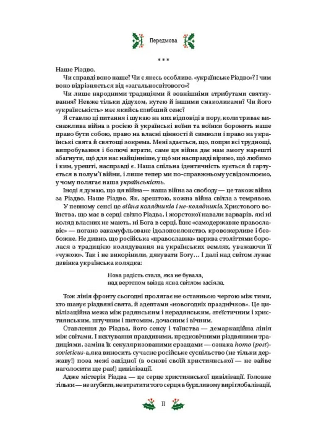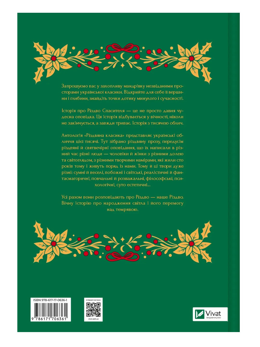 Історія про Різдво Спасителя — це не просто давня чудесна оповідка. Ця історія відбувається у вічності, ніколи не закінчується, а завжди триває. Історія з тисячею облич. Антологія «Різдвяна класика» представляє українські обличчя цієї тисячі. Тут зібрано різдвяну прозу, передусім різдвяні й святвечірні оповідання, що їх написали в різний час різні люди — чоловіки й жінки з різними долею та світоглядом, з різними творчими намірами, які жили сто років тому і живуть поряд із нами. Тому й ці твори дуже різні: сумні й веселі, побожні і світські, реалістичні й фантасмагоричні, повчальні й розважальні, філософські, психологічні, суто естетичні… Усі разом вони розповідають про Різдво — наше Різдво. Вічну історію про народження світла і його перемогу над темрявою.