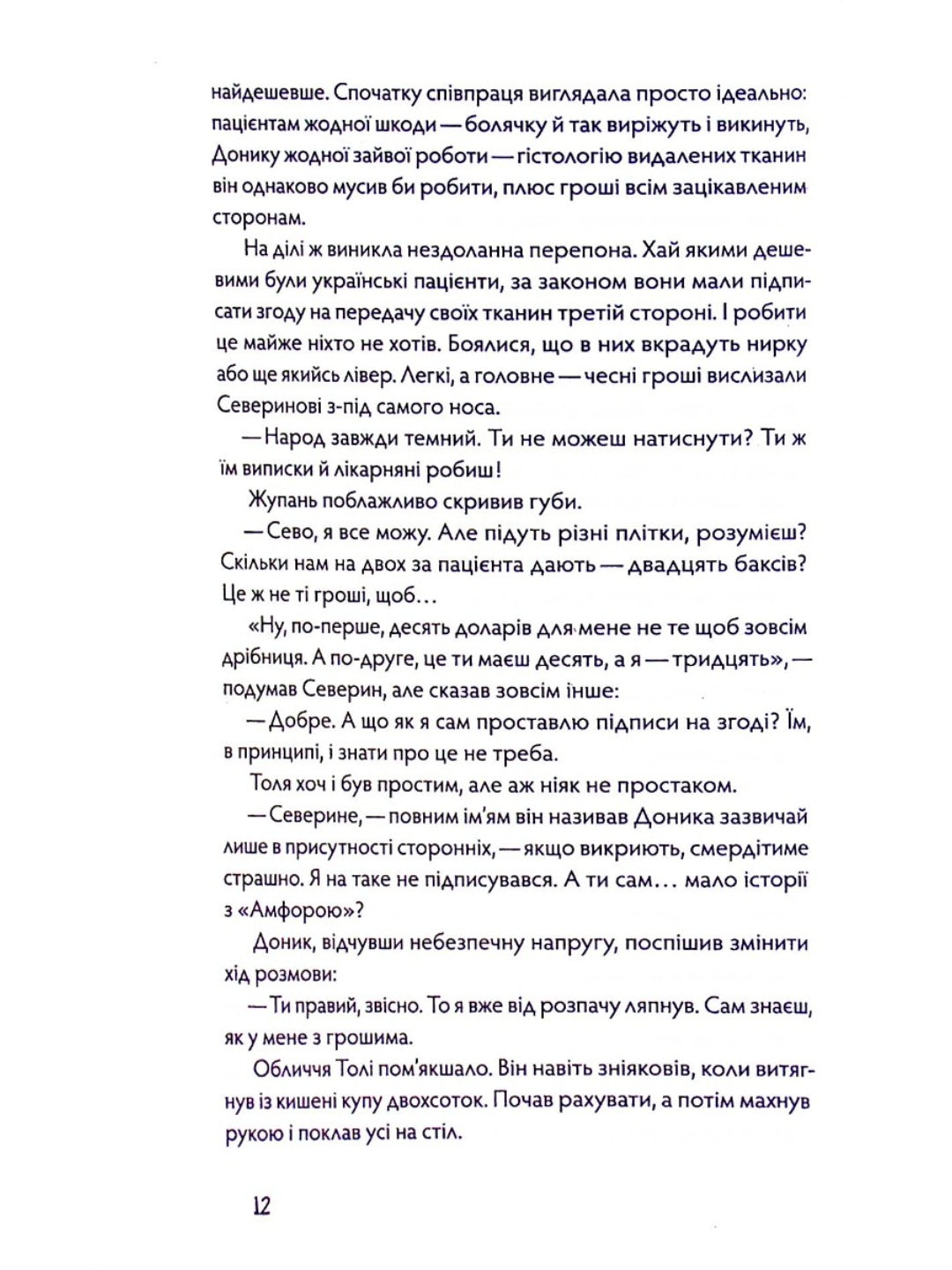 Книга "Танці з кістками" розповідає просту, на перший погляд, історію про Северина - патологоанатома, якому не пощастило ні на роботі, ні в особистому житті. З самооцінкою на нулі та мізерною зарплатою, він швидко піддається спокусі заробити гроші, яка змінить його життя. Хоча пропозиція не зовсім законна, а ринок трансплантації органів не є морально чистим, це стає для Северина надзвичайно спокусливим шансом на забезпечене майбутнє.
