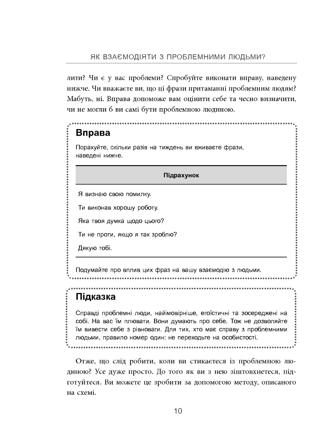 «Як взаємодіяти з проблемними людьми» — ваш справжній навігатор у світі кривдників, причеп, маніпуляторів і любителів поскаржитись. Діалоги-приклади й ефективні техніки допоможуть вам уникнути складних ситуацій і зберегти спокій під час спілкування з людьми, які доводять вас до сказу.