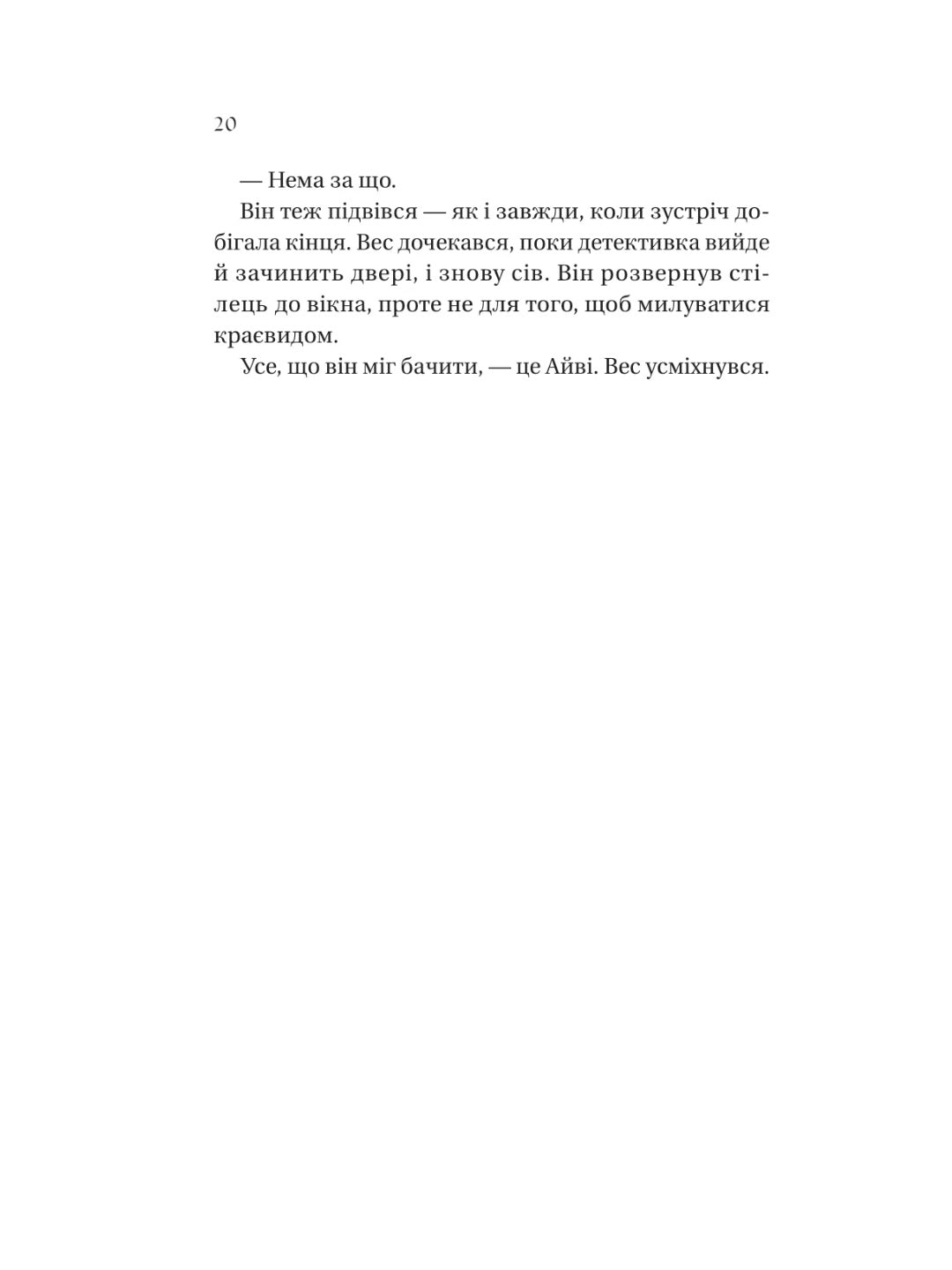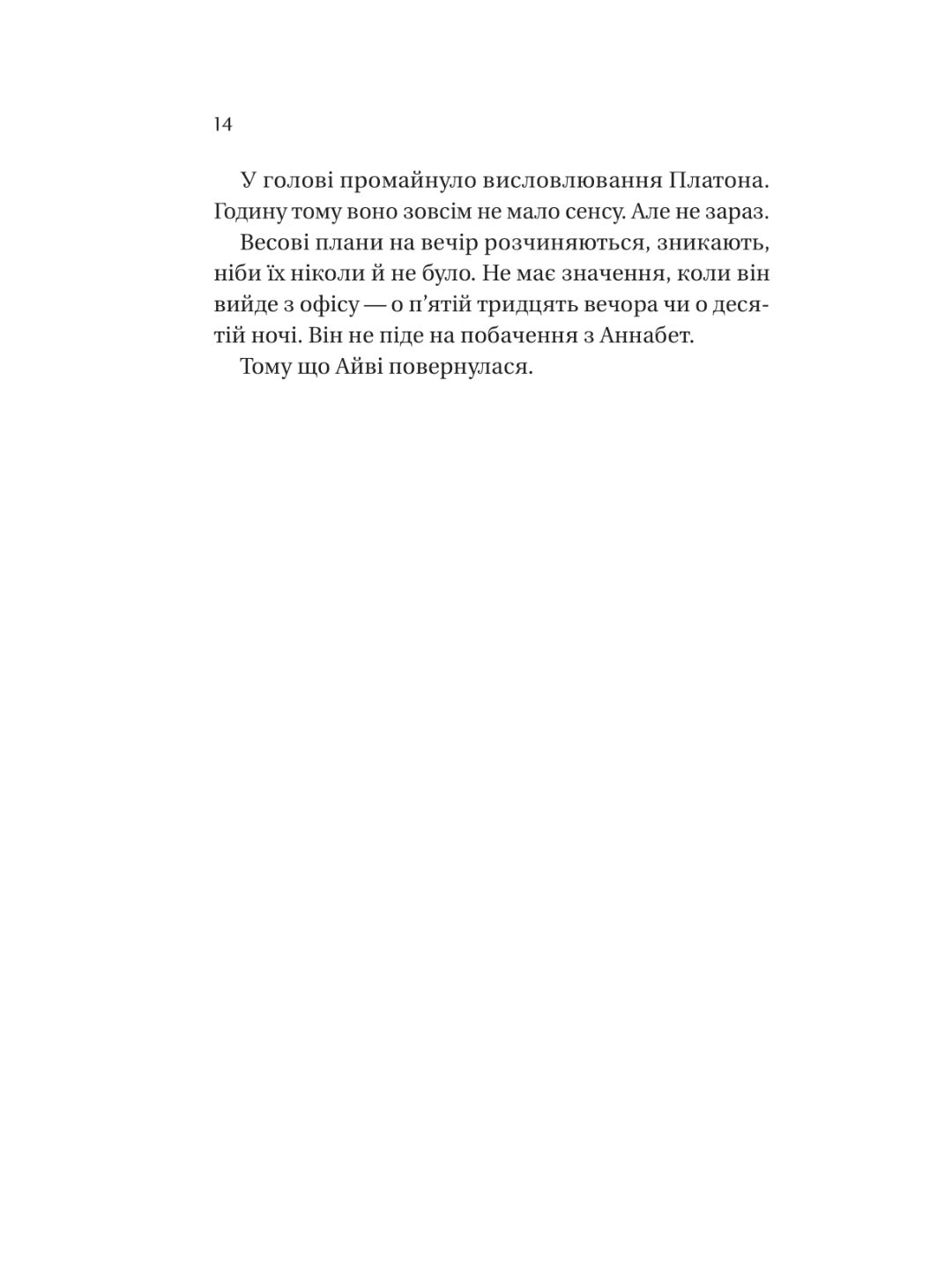 Одного дня замкнене коло катастрофічних розривів і стрімких возз’єднань розривається: у Веса й Айві з’являється спільний ворог — детективка Карен Колґлейзер. Бо є дещо, про що вони мовчать і в хороші часи, і в погані: у ніч їхнього найгіршого розриву хтось із них зайшов занадто далеко, і це призвело до смерті.